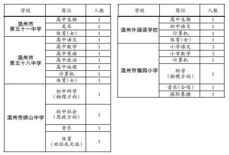 温州市直学校招聘159名教师和工作人员