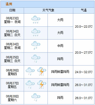 温州网讯(金道汉整理)一雨方知春远,尽管已经进入“夏至”,但沉浸在暴雨下的温州大地并未出现夏天的炎热。本周初,梅雨继续在我市维持,周三傍晚开始雨势渐止,周四雨水卷土重来。世界杯厮杀正酣之际,叫上妹子听雨看球,亦是一件浪漫的事儿。