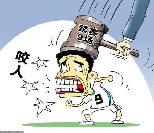 巴西当地时间6月26日中午,国际足联宣布对乌拉圭前锋苏亚雷斯的处罚,苏亚雷斯接到了停赛9场、在未来4个月中禁止从事一切与足球运动有关的活动、球场禁入以及罚款10万瑞士法郎的重磅罚单。