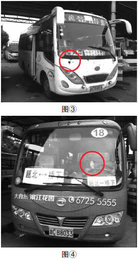 不光后视镜有问题,记者还发现有两辆客车雨刮器缺了一片(图③),看起来“一半清醒一半醉”的样子。客车司机老汪告诉记者,雨刮器损坏已有一段时间了,因为每天要发车,所以没来得及修理,好在靠驾驶室这边的雨刮器没坏,遇到下雨天还能凑合着用。