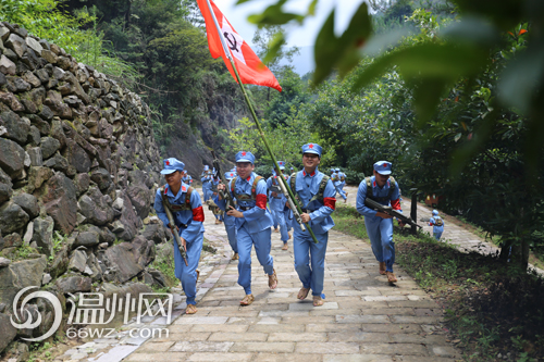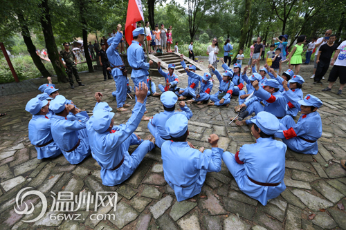 温州网讯(通讯员 吴君 孙浩策)“红军来啦!”只听见一阵机关枪响,一群身着红军战士衣服的年轻人占领了原本由身穿国民党军服的人们守据的碉堡。这不是在横店拍摄“手撕鬼子”的现场,而是今天七月一日永嘉书院率先在全市推出的红色经典体验一日游。