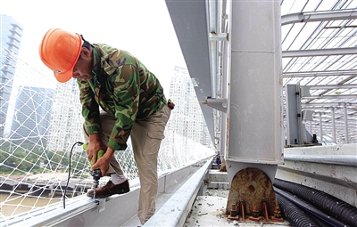 “桥面上施工难度并不大,难度主要来自于高空作业。”赵宏英指着钢结构顶部说,明天他也要爬上去,上面还有两个排水槽需要固定,到时需要格外留心,连颗螺丝钉都要盯紧不让它掉下来。