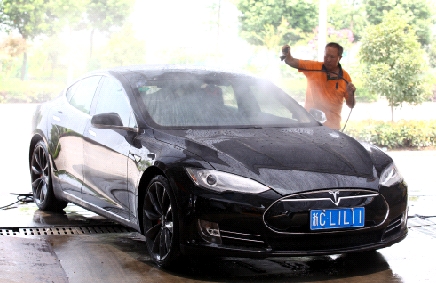 温州网乐清支站讯 没有发动机,没有变速箱,不需要加油,用一个充电桩,充满一次电就能开502公里,从0加速到100公里/小时只需4.4秒。特斯拉,被称为“车界苹果”,号称是最具科技范儿的电动汽车,虹桥的吴先生购买了乐清首辆特斯拉,近日已成功上牌。
