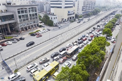 在现场的市交警四大队一中队李队长告诉记者,从早上7点多钟开始,过境公路就出现了车辆排长队现象,早高峰时更是达到了顶峰,不仅过境公路三维桥附近南北方向,雪山路东西走向也出现了路阻。据了解,过境公路花鸟市场前双向车流量每天大约为66533辆。