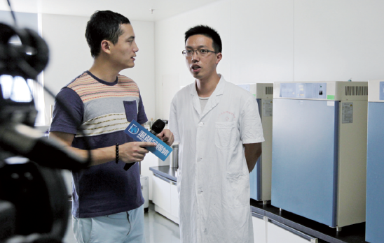 昨天,温州市疾病预防控制中心卫生微生物实验室,温都全媒体记者正在采访实验的检验师。 记者 郑之越/摄