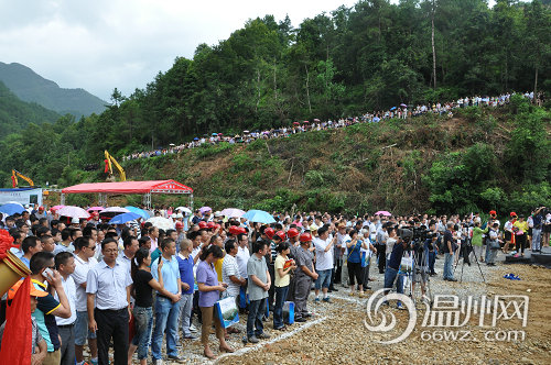 温州网文成支站讯 7月18日上午,峃口镇东方村礼花四射、礼炮齐鸣,龙丽温高速(瑞文段)动工暨文成“产城联动50亿项目”集体开工仪式隆重举行,39万文成人民期盼已久的龙丽温高速公路正式破土动工,当地数千民众一大早便守候在开工仪式现场,以共同见证这一历史性时刻。