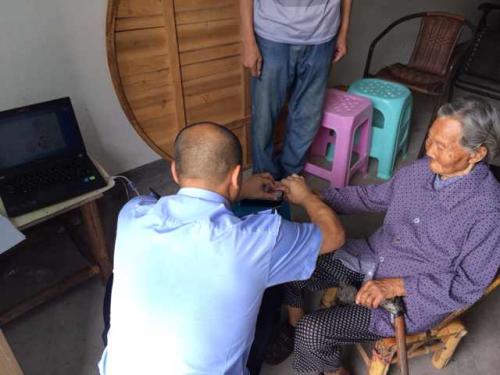 九旬老人行动不便 民警上门采集指纹办二代身份证