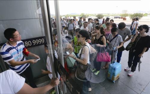 昨天下午,温州火车南站进站口,不少旅客在站外排队等候实名验票。
