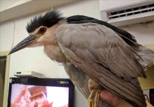 经绿眼睛环保组织工作人员初步鉴定,这只黑灰色大鸟为夜鹭,属省级保护动物。据派出所民警称,从外表看这只夜鹭没有受伤,表现得有点凶猛。