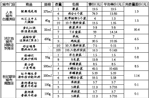 超市:受包装、供货价、促销等影响