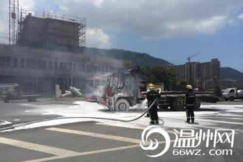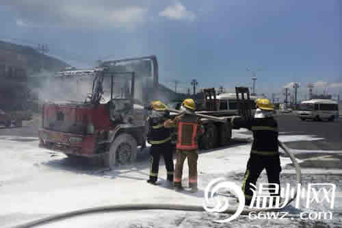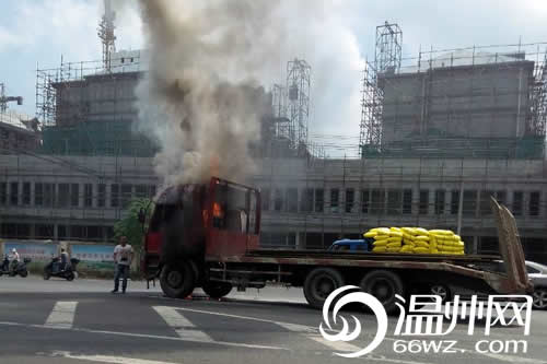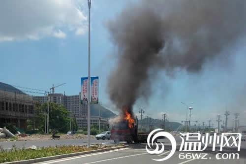 温州网讯 7月29日中午11时,一辆大型货车行经平阳县昆阳镇昆敖路段时车头处冒烟起火,因该货车未随车携带灭火器,驾驶员只能逃离驾驶室眼睁睁的看着火势越来越大,随后交警和消防赶到现场,对现场周边道路进行管制,扑灭了起火点,但是该大货车车头部位已经基本报废,所幸的是没有人员受伤。交警部门提醒,夏季,汽车长时间行驶在高温下时,应在中途多作休息,不要让车子长途暴晒,高温天气下短暂停车也得熄火。
