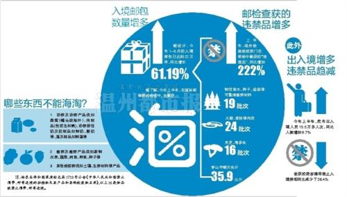 温州网讯 昨天,温州出入境检验检疫局首次针对邮检和旅检情况召开新闻发布会,表示近来在邮寄物中查获的禁止入境物数量在不断增加。他们建议消费者在选择海外网购(又称“海淘”)时,先了解清楚所买的商品是否能邮寄到国内,要把违禁物品拉黑(拉进黑名单)。