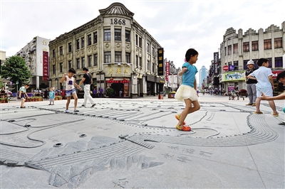 小朋友们在改造后的五马街地雕图案上嬉戏玩耍。资料照片杨冰杰摄