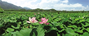 别处的荷花是栽种在水塘中,而柳城的“十里荷花”是栽种在普通的水田中,偌大的荷塘被田埂分成许多区域,可漫步其中近距离接触荷花。荷花物种园是十里荷花景区的精粹之处,面积200余亩,植有从中国农科院、中国荷花研究中心引进的优质籽莲、观赏莲、睡莲等320多个荷花品种,漫步其中,如同上了一堂直观的荷花自然课。走在荷塘整洁的步道,头顶是各种新奇品种的葫芦及丝瓜等藤蔓蔬菜搭成的凉棚,前后左右都是漫无边际的荷花。