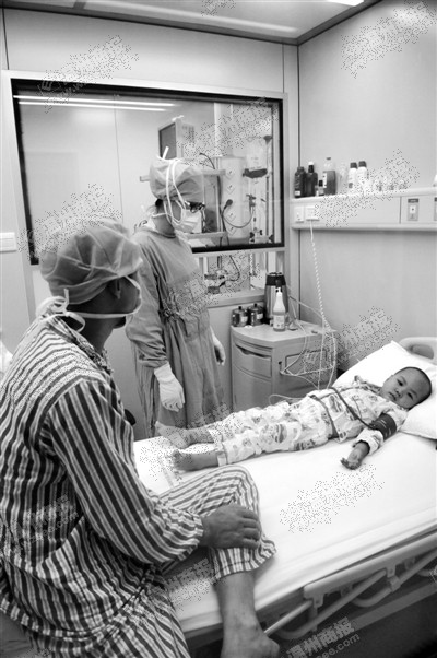 “这顿做的是番茄蛋汤,还有炒茭白、橙子。雨露喜欢吃这些,昨天吃了10个橙子。”透过玻璃窗看到小雨露正大口吃着饭,李明英脸上露出了微笑。李明英说,孩子出生第二天就被她抱养过来了,从小到大都没离开过这么久,雨露从7月25日住进无菌病房到现在已12天了。