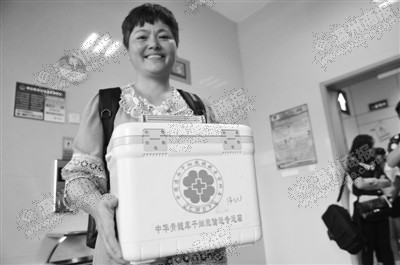 昨天下午4点20分,一架从湖南长沙来的飞机缓缓降落在温州永强机场,来自湖南的志愿者唐喜阳手捧造血干细胞储存专用箱,小心翼翼地走下飞机。温医附一医血液内科主任俞康亲自到机场迎接志愿者。
