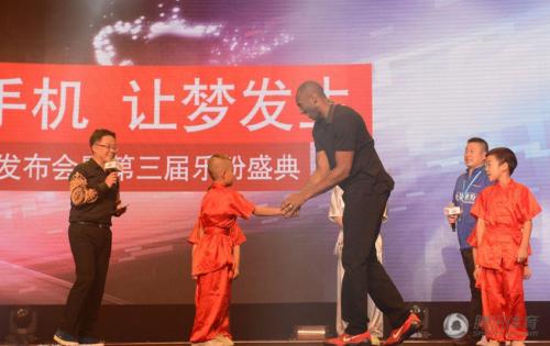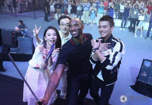 8月5日晚,科比跨界与欧豪Hebe首度联袂助阵,出席某商业活动。手持自拍神器,与两位歌手合照,笑容可掬。