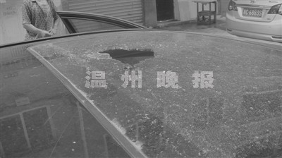 温州网讯 昨天,平阳县鳌江镇前南庄的一马路上,停靠在路边的一辆私家车天窗玻璃被砸碎,“罪魁祸首”是一瓶从六楼掉落的指甲油。