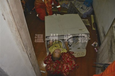 7月10日上午10时许,永嘉瓯北一3岁男童独自在洗衣机里玩耍时不慎卡在洗衣机滚筒中。当时,男童的父母在外招待客人,而男童在卧室的卫生间里玩耍。所幸获救时,男童的腿部和膝盖只有一些擦伤,没有大碍。