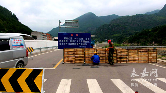 在接到灾情报告后,县公路管理局立即启动应急预案,组织机械设备和抢险人员赶往现场,在塌方路段的两端设立抢险作业安全警告标志,同时做好交通管制和抢险工作,塌方物当日基本完成清理。当时,抢险人员仔细观察公路边坡上方山体,对边坡崩塌区危岩体稳定性进行定点观测和分析,发现塌方处上方135米至185米处的山体松散,存在较大安全隐患,遂决定自6月25日起对雁楠公路鹤盛镇鹤盛村前一段公路实行封闭。