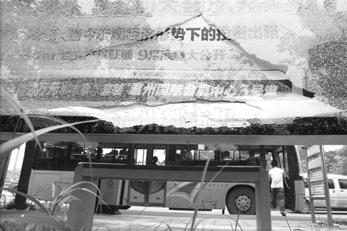 温州一公交站玻璃突然爆裂 怀疑和货车经过有关