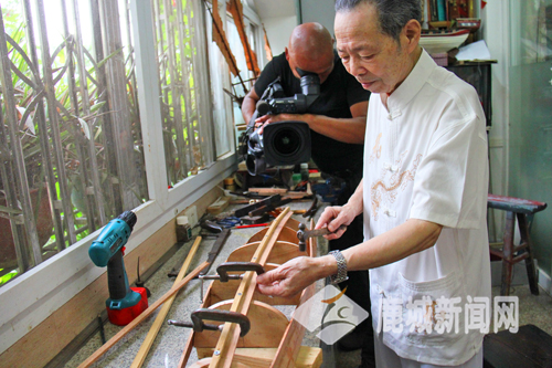 温州网鹿城支站讯 8月12日,浙江卫视《南宋》纪录片摄制组记者来到鹿城区被誉为“船模大王”的王阿龙师傅家,拍摄其正在开工制作的一艘南宋车轮船模型。据称,王师傅将花费1个月左右完成这艘南宋车轮船模型。期间,浙江卫视记者将定期来鹿城拍摄这艘模型的建造过程。节目将于年底前播发。