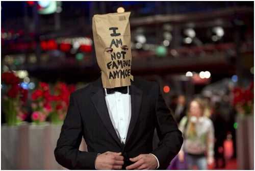 2014年的柏林电影节,《变形金刚》男一号希安-拉博夫(Shia LaBeouf)头上戴着一个牛皮色纸袋亮相红毯,只露出了一双眼睛。纸带上写着五个英文单词,“I AM NOT FAMOUS ANYMORE”(我不再有名)。据说希安-拉博夫在此前的一个月里,就多次在推特上讲这五个词,反复表面自己已经不再出名了,还一直声称自己要隐退,不再出现在公众场合中。这种此地无银三百两,自编自导自演的伎俩,真是够了。更奇葩的事情还在后面,就在柏林电影节刚结束没多久,希安-拉博夫在洛杉矶开展了名为“I AM SORRY”的艺术展。艺术展长达一周,整个展览就是希安本人坐在室内,有时戴着那个相同的牛皮纸袋,全程沉默一言不发,有时摘下头套,一副欲哭无泪的可怜表情。艺术展结束当晚,希安默默走出,之后与粉丝团面向墙角紧紧拥抱在一起,整个艺术展都弥漫着极其强烈的古怪尴尬气氛,有一种惊悚片里被鬼附身的即视感。希安啊,你安安稳稳做《变形金刚》里帅气的山姆不行吗?