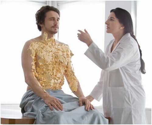好莱坞不务正业第一人詹姆斯-弗兰科(James Franco),也一直奔走在追寻艺术的大道上貌似这位小哥的整个人生就是一场后现代主义实验室。行为艺术对他而言,说不定是比做演员更有趣的事情吧。圣丹斯频道节目《Iconoclasts》第六季的首播集中,詹姆斯-弗兰科与著名的行为艺术家马里娜-阿布拉莫维奇搭档。詹姆斯安静地坐在那里,裸着上身,马丽娜为他贴满了金树叶,将他塑造成一座金色的活雕像,闪瞎了所有观众。那这么做的寓意是什么呢?马丽娜自信的说道,很多艺术不需要任何寓意,只需要欣赏就够了。还真是奉行行为艺术家的一贯准则,“彪悍的人生无须解释”。就如同詹姆斯的奥斯卡主持一样,完全不打算娱乐大众,从始至终都在娱乐自己,这种“众人皆醒我独醉”的精神真是值得嘉奖。除了这些,詹姆斯-弗兰科还曾为FLAUNT杂志,献上了自己的那尊绝世好臀。一幅巨大的臀部特写,真是露骨地向我们展示了什么叫做艺术的自由。网友们呼吁,詹姆斯,你快去和Gaga姐组个团吧,绝对震撼宇宙,连组合的主题曲都帮你们想好了,就用《Born This Way》吧。