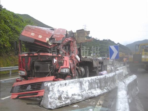 湖雾岭长下坡路段 半挂车侧翻司机不幸身亡