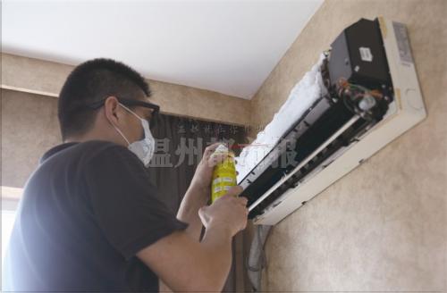 专家组成员介绍,首先将过滤网用水冲洗干净,接着在关机状态下,在空调蒸发器上用专用的空调清洗剂进行全面喷洒;10~20分钟后,将空调打开并切换至制冷模式,这样子清洗剂和污垢就会随着冷风自动通过风管、外机排走。同时,屋内应保持通风状态。