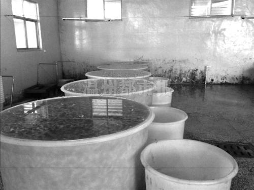 添加了“双氧水”的凤爪在一个大水槽中泡发。