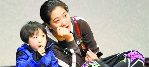 胡美带着儿子到赛场为朱芳雨助阵。