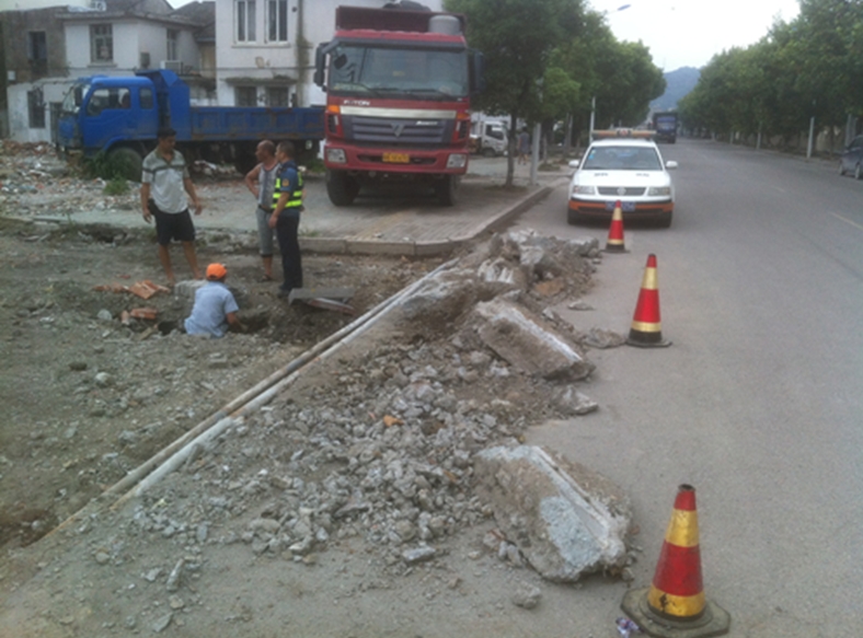 温州网龙湾支站讯 8月25日下午,温州市龙湾路政执法人员在辖区茅永线开展日常路政巡查工作时发现,该线底岭下路段有人在擅自开设交叉道口,立即责令其停止施工。