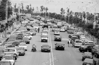 温州网讯 昨天是温州市第二十二中学高一新生报到日,由于学校地理位置较偏远,很多家长驾车送孩子到学校,但由于接送车辆较多,加上有部分家长不文明停车,致使原本六车道的瓯江路一度被堵成了单车道。