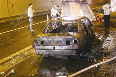 上午8时许,张先生等人驾乘的轿车进入诸永高速公路龙岩头隧道。据介绍,该隧道长达2900米。在离隧道出口900米处时,该车头右前部位蹿出火苗。“看到起火后,他赶紧把车停靠在隧道紧急停车带内。”高速交警说,张先生一度想灭火,但火势却越来越大。