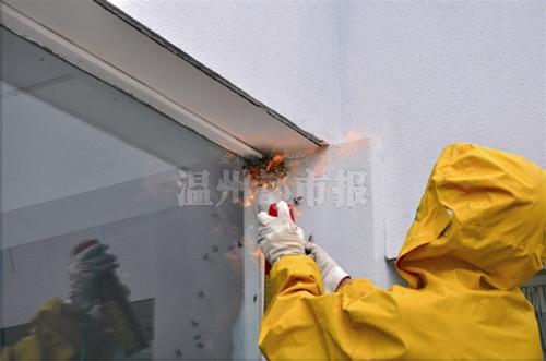 四窝马蜂“非法入住”幼儿园 消防员予以“强拆”