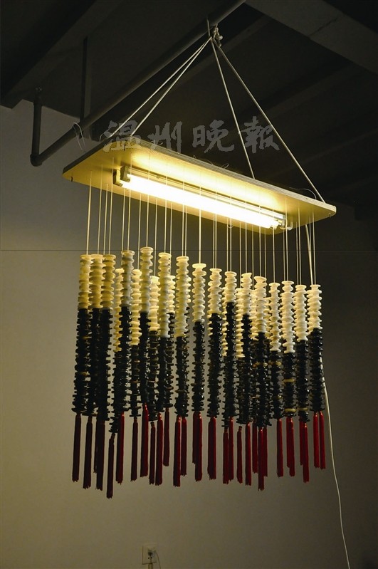 温州网讯 用纽扣拼贴的画、用树干改造的凳子、用报纸制作的雕塑……生活中有这样一群热爱艺术的年轻人,他们秉承环保的理念,通过创意灵动的设计,化腐朽为神奇,将生活中的废品变成一件件富有巧思的艺术品。近日,“首届两岸大学生基于温州文化元素的低碳设计工作坊”活动举行,来自台湾与大陆9所高校的36名大学生分成9组,进行了一场创意比拼。由温州之尚艺术设计有限公司总设计师陈季指导的团队,以永嘉文房四宝村后的笔架山为灵感来源,使用废弃的纽扣、回收的木材和工业废料,巧妙制作成具有鲜明特色的“BIGGER(笔格)”系列产品吊灯、足底按摩器和烛台,最终获得了最佳环境友好奖。