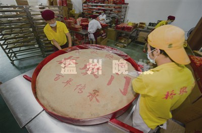 桥墩门巨无霸月饼:15小时手工烤制 重500多斤