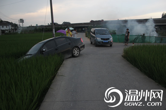 温州网讯 9月2日下午,家住温州的谢女士驾驶一辆小轿车到平阳县昆阳镇鸣山村看望自己的表姐,谢女士驾车从高速平阳收费站下来后很快进入了鸣山村境内,在驾车从高速公路下方穿过,错综复杂的农村道路让谢女士一下愣住了,只知道其表姐告诉她要怎么走,但是没想到道路这么复杂,好不容易找准了方向,经过一个“T”型路口时,没有观察好前方路面情况,打了一把方向后一脚油门跟了上去,车子一下就冲了出去,没等方向回正,结果半辆车已经栽在了田里,所幸无人员受伤。