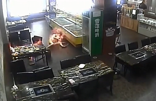 女生吃烧烤被大火瞬间包围 服务员误倒酒精所致