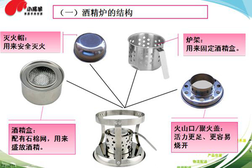 ③酒精炉要用灭火帽熄灭。待盖帽熄灭后,拔下重盖一次。防止灯帽内外形成压强差,而将帽吸紧,以后使用不易取下。