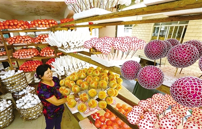 温州网讯 瑞安市湖岭镇溪坦村有大山里的“圣诞村”之称,现在家家户户做圣诞礼品,有金粉彩球、松果、铁铃铛、圣诞珠串、蝴蝶结等上千个品种。每年的5月至8月份是圣诞礼品生产最繁忙和发货出口欧美等国家的高峰期。今年5月至8月份仅圣诞礼品出口预计达到3.5亿元。庄颖昶摄