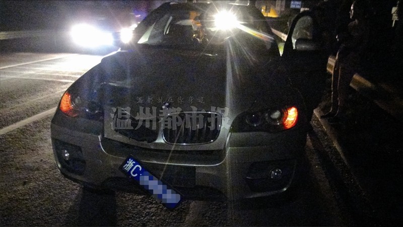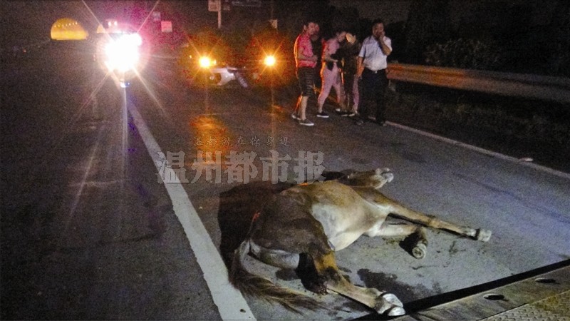 事发地点位于104国道永嘉县三江街道卧马山隧道口,报警的是一名宝马越野车女司机,她说自己的车撞飞了一匹“马”。