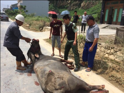 平阳一水牛狂奔撞伤人 特警开枪将其击毙