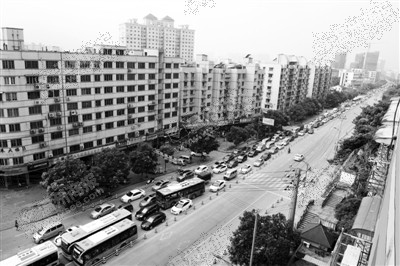 西山东路施工第一天 车流量巨大出现严重路阻
