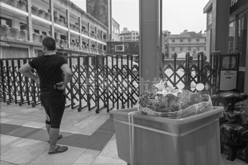昨天上午,广场路小学广场校区门口,一名送花小哥被拦在校门外。