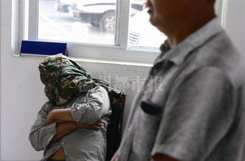 昨天,在平阳县公安局鳌江派出所,面对采访的阿路变得有些急躁,最后干脆用衣服蒙住了头。