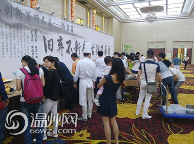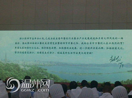 温州市商务局副局长潘平平对瓯菜进行推广。他对瓯菜的历史、风味、传承等方面做了介绍。潘平平说,瓯菜发展至今,又迎来了春天,温州这座古老的历史文化名城蕴藏千年的经典瓯菜将重放光芒。温州市委市政府高度重视瓯菜和餐饮发展,2013年9月16日出台了关于振兴瓯菜,促进餐饮业发展的政策文件。他表示,今后,温州还将继续开展以瓯菜为主题的系列活动,包括开展温州“地方风味菜”全国邀请赛,开展世界温州人瓯菜大赛,赴国内外开展瓯菜技艺表演和展示。(记者 陈克力)