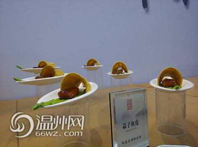 来自温州华侨职业中等专业学校的施世港、王仁构制作的瓯菜。(记者 陈克力)