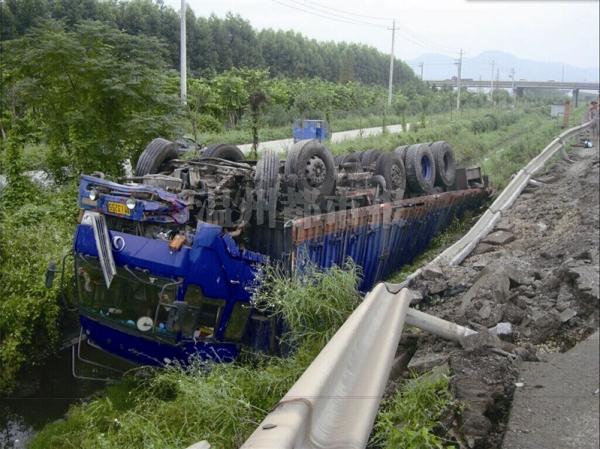 货车高速路上突然熄火 司机打方向盘过猛侧翻